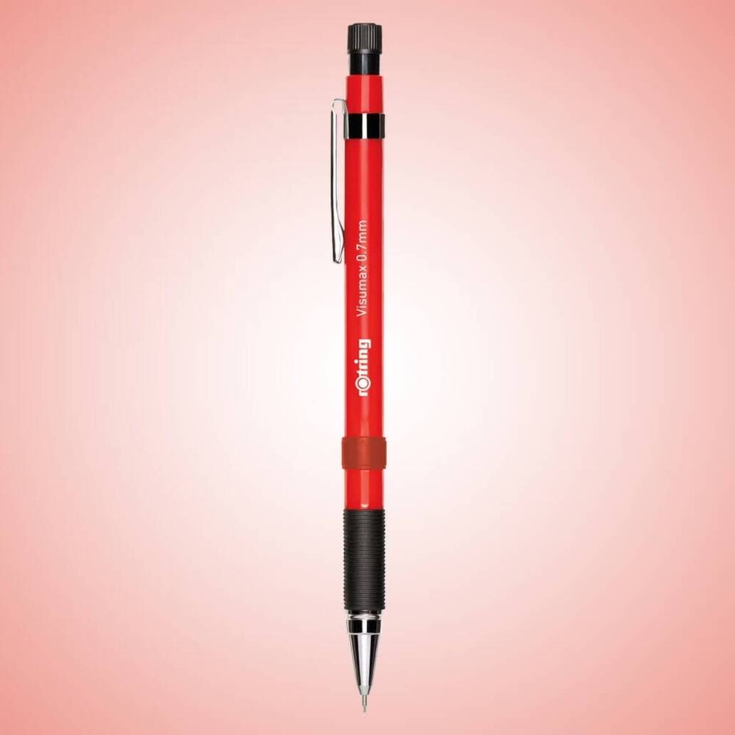 Rotring Visumax Versatil Kalem 0.7 mm Kırmızı, HB, B veya 2B gibi farklı uç sertlikleriyle uyumludur. Kauçuk tutma alanı, elde kaymayı engelleyerek kontrolü artırır. Mekanizması güvenilir olup her basışta ucu dengeli bir şekilde ileri çıkarır. Arka kısmında yer alan entegre silgi, pratik düzeltmeler için kullanışlıdır. Metal uç kısmı ise uç kırılmalarını azaltarak kalemin uzun süre sorunsuz kullanılmasını sağlar.