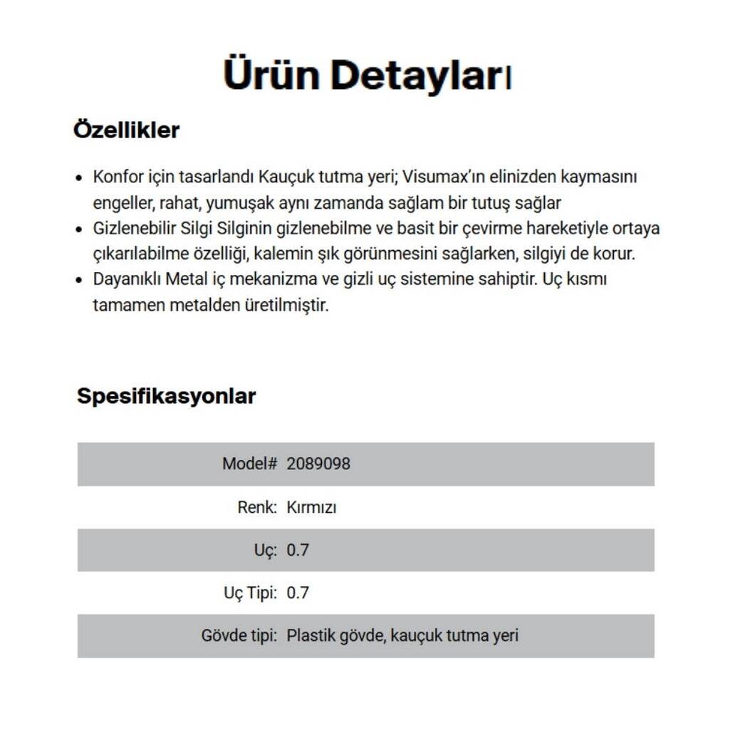 Model: Visumax 0.7 mm Kırmızı