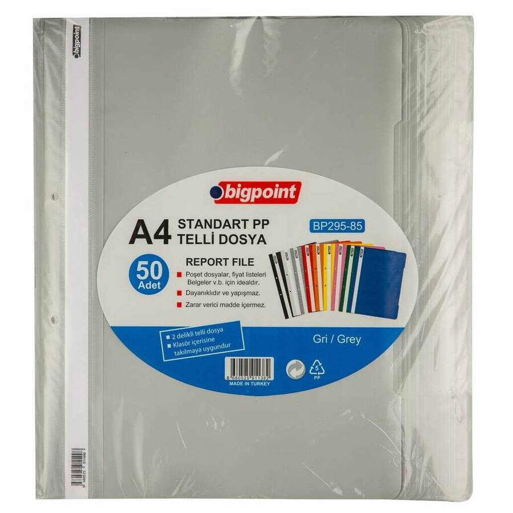 Dosya içindeki metal telli mekanizma, belgelerin düzenli şekilde yerleştirilmesini sağlar ve aynı zamanda poşet dosyalar ile uyumlu olması sayesinde evraklarınızı daha korunaklı şekilde saklamanıza yardımcı olur. Kalın ve sağlam kapak yapısı, sık kullanıma dayanıklılık gösterirken, gri rengi profesyonel bir görünüm kazandırır. 50 adetlik ekonomik paket ile hem kurumlara hem de bireysel kullanıcılara uzun süreli avantaj sağlar.