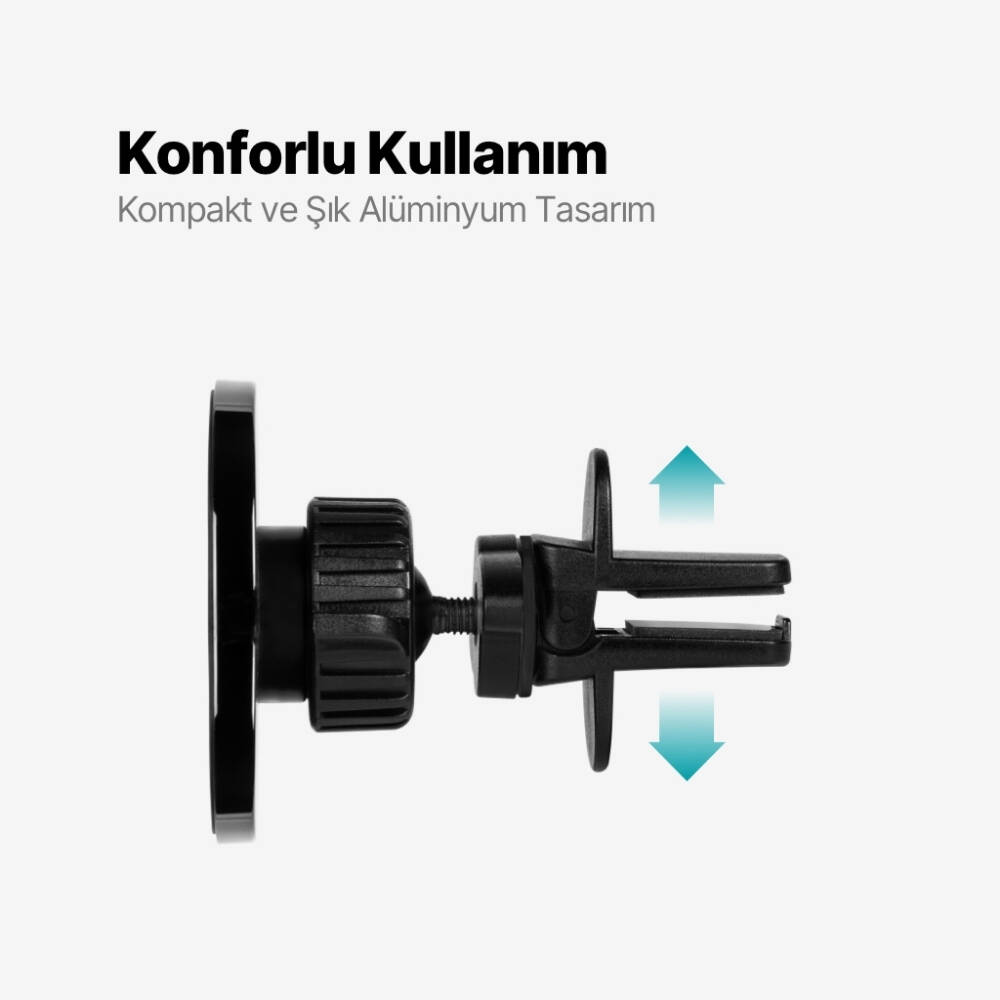 Kompakt ve zarif tasarımıyla araç içi estetiği korurken, 360° dönebilen başlık özelliği sayesinde telefonu dikey veya yatay konumda kullanma imkânı sunar. Bu sayede navigasyon, müzik veya çağrı yönetiminde en uygun görüntüleme açısını kolayca elde edebilirsiniz.