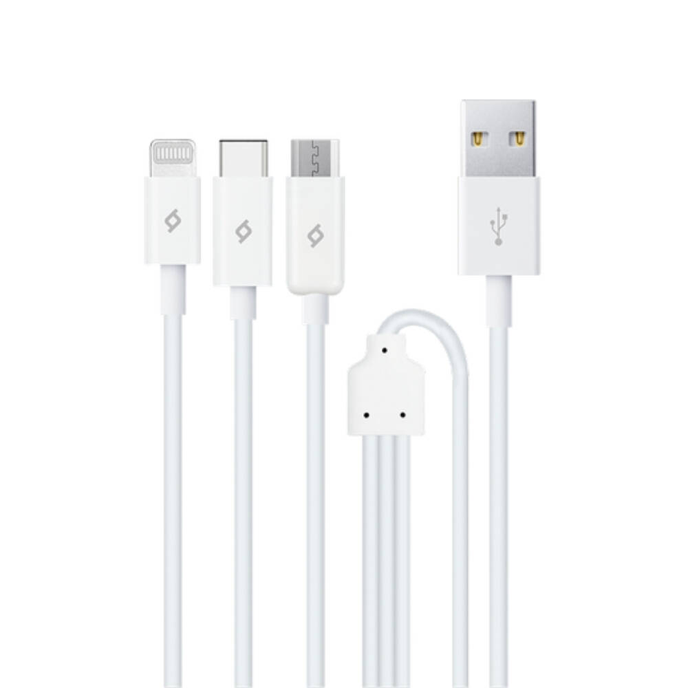 Ttec Trio Şarj Kablosu, USB-A - USB-C / Lightning / Micro USB, Beyaz modeli; çok yönlü uyumluluğu sayesinde her ortamda tek kabloyla tüm cihazlarınızı şarj etme imkânı sunar.
