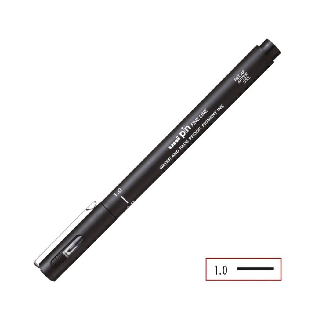 UNI Pin 200 Teknik Çizim Kalemi – 1.0 mm Siyah, pigment mürekkep teknolojisi ile üretilmiştir. Mürekkebi ışığa ve suya karşı dayanıklı olduğundan çizimleriniz uzun süre kalitesini korur. 1.0 mm kalın uç, özellikle belirgin çizgiler, dış hatlar ve güçlü kontrast isteyen kullanıcılar için uygundur. Mürekkep kuruduktan sonra üzerine suluboya, marker veya farklı boyama teknikleri uygulanabilir; akma yapmaz.