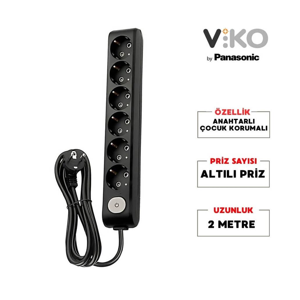 6’lı Viko Çoklu Priz: Altı cihazı aynı anda bağlayabilir, ev, ofis ve iş yerlerinde güvenli enerji kullanımına olanak tanır.