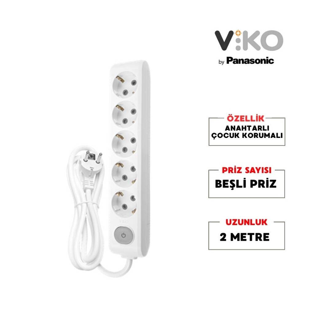 5’li Viko Çoklu Priz: Aynı anda beş cihazı bağlayabilir, ev ve ofislerde güvenli kullanım sağlar.