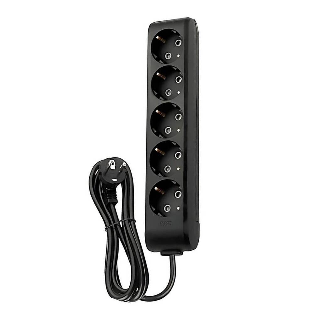 Beşli Topraklı Çoklu Priz – 5 m Siyah, güvenlik, estetik ve esnekliği bir arada sunar. Topraklı yapısı cihazlarınızı elektrik kaçaklarına karşı korurken, uzun kablosu sayesinde priz erişim sorunlarını ortadan kaldırır. Beş priz çıkışı, aynı anda birden fazla cihazı bağlama imkânı verir.