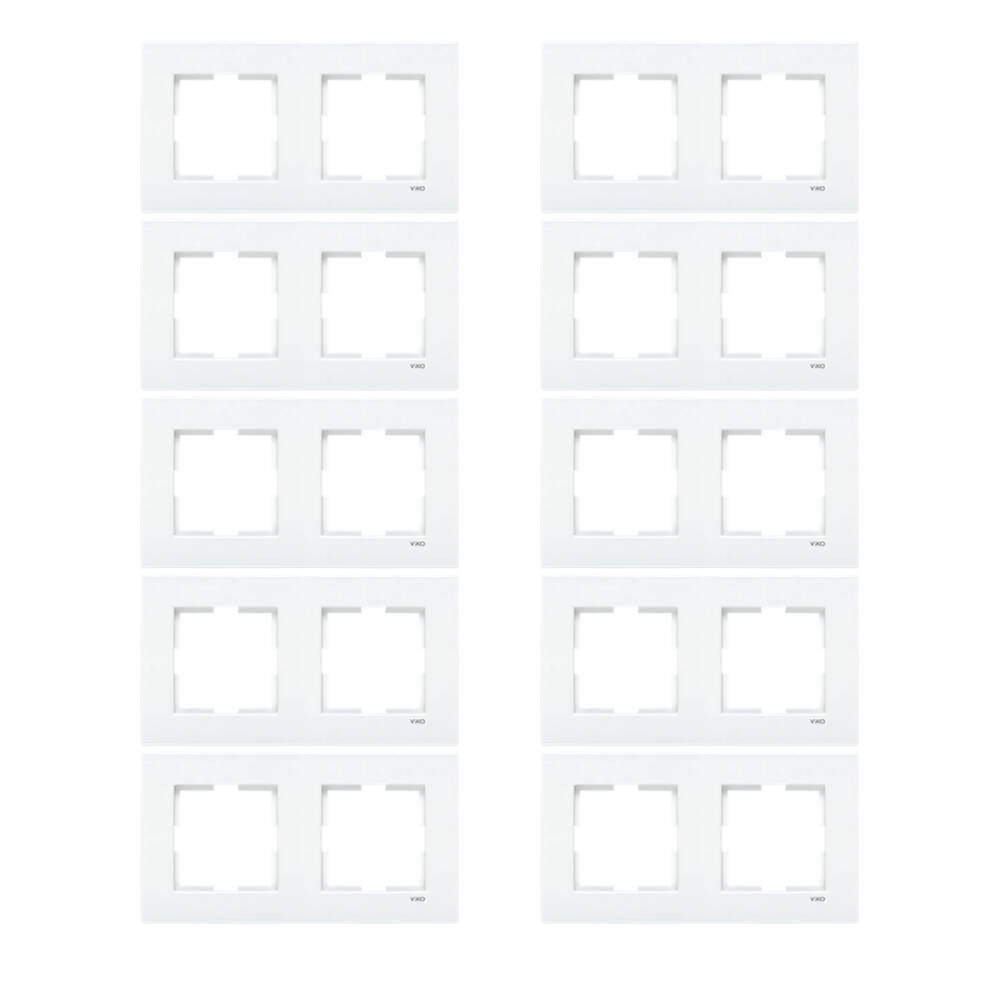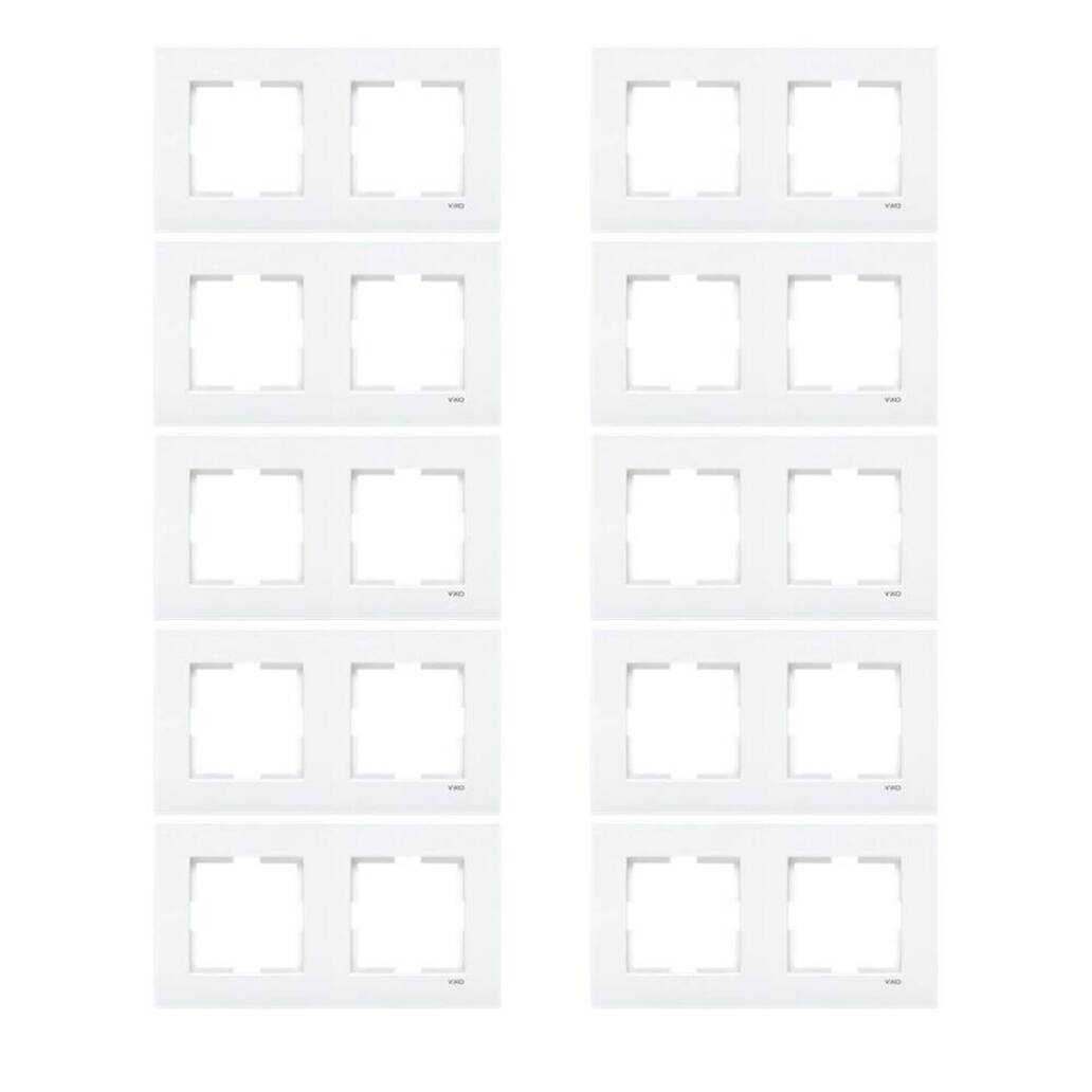 Viko Karre Priz Çerçeve, 10 Adet, ikili, yatay, beyaz, dayanıklı ve şık yapısıyla yaşam alanlarınıza düzen, estetik ve güvenilir kullanım kazandırır. Evlerde, ofislerde veya ticari mekânlarda modern ve pratik çözümler arayanlar için ideal bir tercihtir.