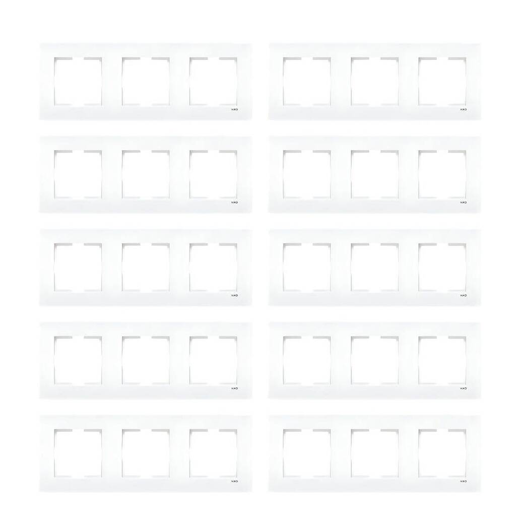 Viko Karre Priz Çerçeve, 10 Adet, üçlü, yatay, beyaz, dayanıklı ve şık tasarımıyla yaşam alanlarınızda hem estetik hem de fonksiyonel bir çözüm sunar. Evden ofise, ticari alanlardan toplu projelere kadar her yerde düzenli, modern ve uzun ömürlü priz çözümleri arayan kullanıcılar için mükemmel bir tercihtir.