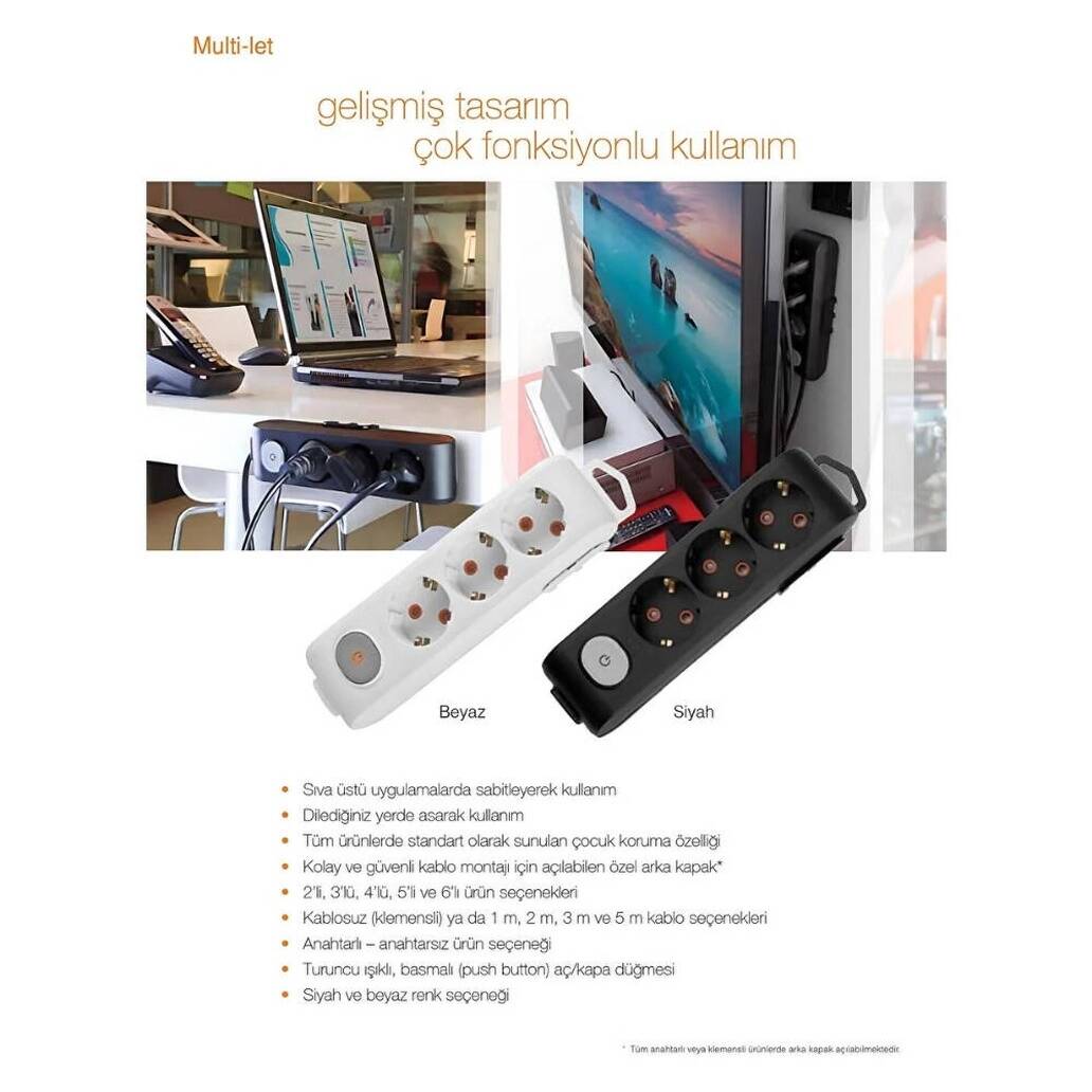 Topraklı güvenlik sistemi, cihazlarınızı olası elektrik kaçaklarına ve akım problemlerine karşı korur. Bu özellik özellikle hassas elektronik cihazlar için ekstra güvenlik sağlar. 3 metrelik uzun kablo, priz erişiminin zor olduğu alanlarda kolay kullanım sunar. Evlerde, ofislerde, toplantı salonlarında veya mobilya düzeninin prizleri kapattığı noktalarda cihazlarınızı rahatça konumlandırmanıza yardımcı olur.