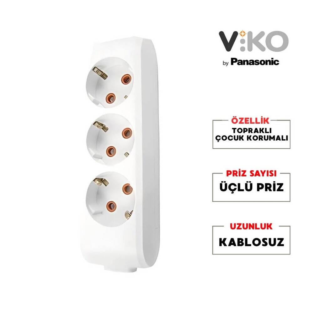 3’lü Viko Çoklu Priz: Aynı anda üç cihazı bağlayabilir, masa, sehpa ve TV üniteleri için pratiklik sağlar.