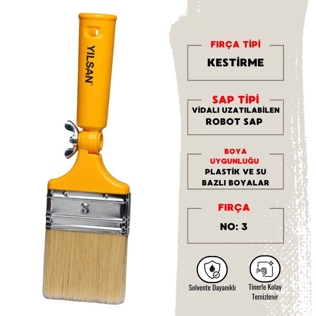Dayanıklı Yapı : Yüksek kaliteli malzemeden üretilmiş Yılsan robot boya fırçası uzun ömürlü kullanım sunar.