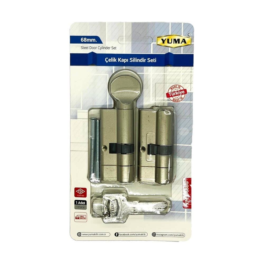 YUMA Ortak Anahtarlı 2’li Kilit Silindiri, Tuzaklı Bilyalı, 68 mm, Nikel, pratiklik ve güvenliği bir arada sunar: